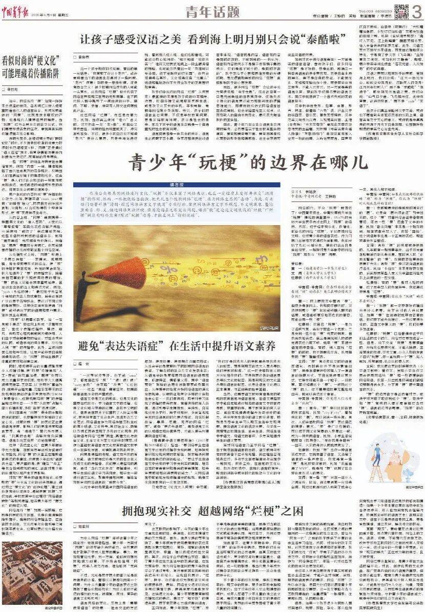 《青少年“玩梗”的边界在哪儿》正是一组聚焦青少年思想引领的专题策划。围绕网络语言文字不规范、不文明,编造网络黑话烂梗,滥用隐晦表达等现象,编辑部邀请青年学生、青年研究者表达自己的观点。一名大学生作者写道,青少年现实社交的扁平化,导致网络烂梗的泛滥。他呼吁为青少年提供充足的空间和机会,激发他们与人交往、沟通、观察与反思的愿望。类似站在青年视角的论述语气,比居高临下的指责更具亲和力,也更能引发青少年群体的情感共鸣与价值认同。