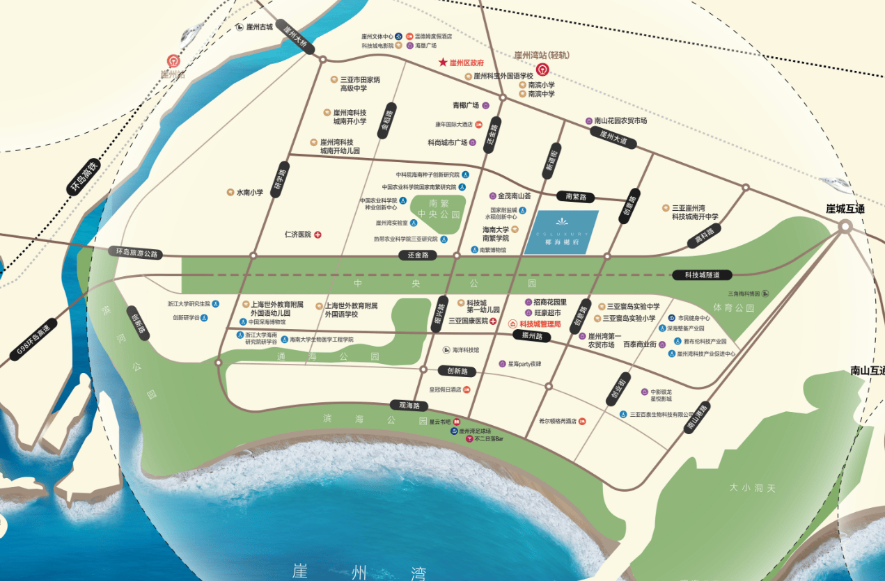 三亚崖州湾科技城高新区,规划面积约26平方公里,是海南自贸港13大重点园区中唯一的深海科技产业高地,目前已构建 “南繁硅谷+深海科技+产城融合”三位一体生态圈。通过向种图强、向海图强、向天图强,发展建设陆海空三大未来产业。目前,约39个省部级及以上科创平台在此建设,约1.3万家企业扎根深耕,超2.8万高精尖人才汇聚于此。未来将集聚超2000家高新企业,承载10万菁英安居乐业。