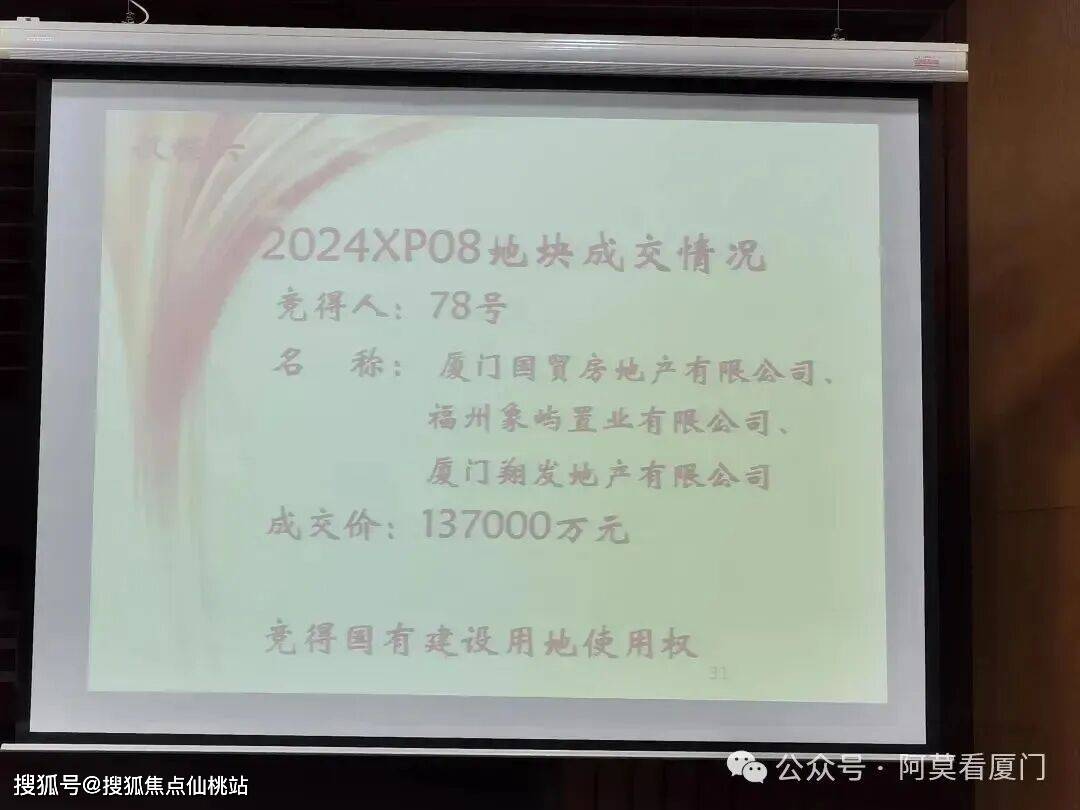 2024年12月13日土拍当天,该地块被国贸、象屿、翔发底价竞得,楼面价15000元/平,溢价率0。