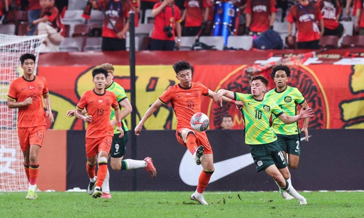 比赛在沙特利雅得的沙巴布体育场打的,2026年亚足联U23男足亚洲杯D组第二轮。新华社报道说,中国队两战1胜1平积4分,暂时领跑小组。首轮他们0比0逼平伊拉克,澳大利亚那边2比1赢了泰国。