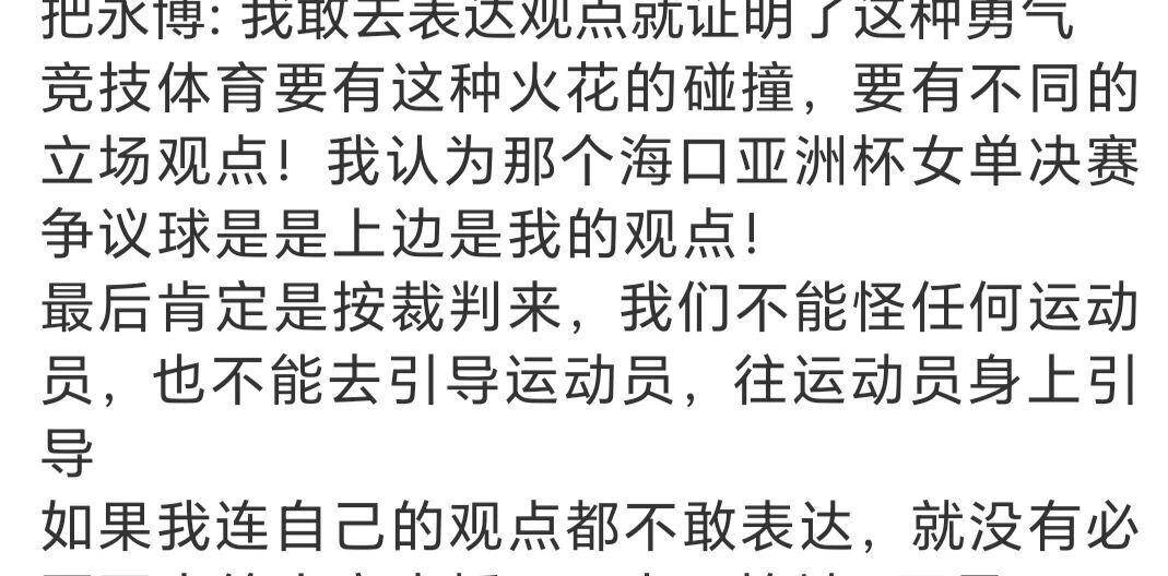 就在这场风波似乎即将随着时间的推移而渐渐平息之际,一个意想不到的声音打破了平静。国家乒乓球队的陪练,把永博,在他的个人网络直播间里,被网友问及了对这个争议球的看法。他没有选择模棱两可的回答,而是直接给出了一个斩钉截铁的答案:“我认为那个球就是擦上边,应该是孙颖莎得分。”